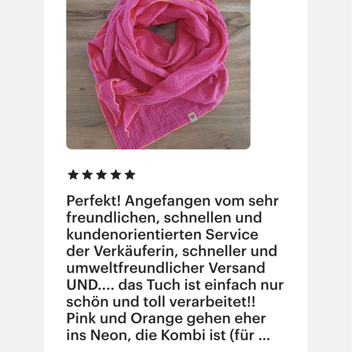 Pflege: Waschbar sind die Schals auf 40°, bitte nicht bügeln , oder im Trockner trocknen, da sich dort der Stoff verzieht.